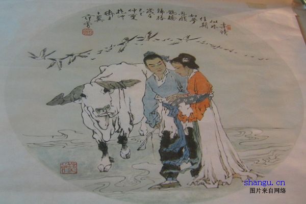 酬恩乌鹊浮白浪,赐巧娥眉下翠微。